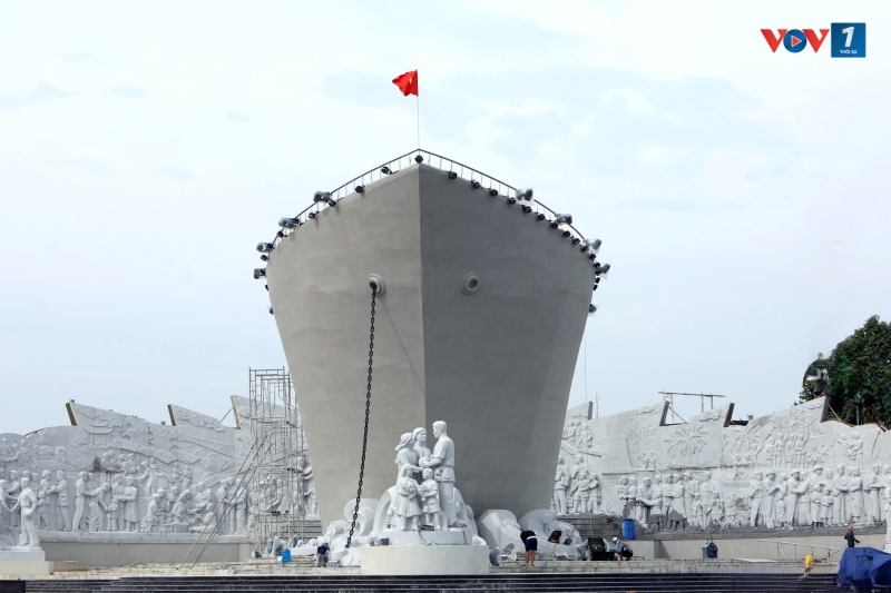 Sau hai năm thi công, tượng đài “Con tàu tập kết ra Bắc” đang dần hoàn thiện với điểm nhấn là bức phù điêu hình cánh cung được làm bằng đá khối granite. Phía trong thân tàu được thiết kế cầu thang lên xuống. Khu vực trong lòng tượng đài sẽ được bố trí như một bảo tàng thu nhỏ gồm các hiện vật sưu tầm và mô phỏng nội thất con tàu của Ba Lan, Liên Xô (cũ)…