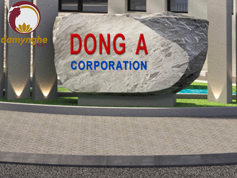 - Bảng hiệu công ty bằng đá làm nổi bật thương hiệu công ty với sự trang trọng.